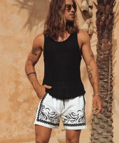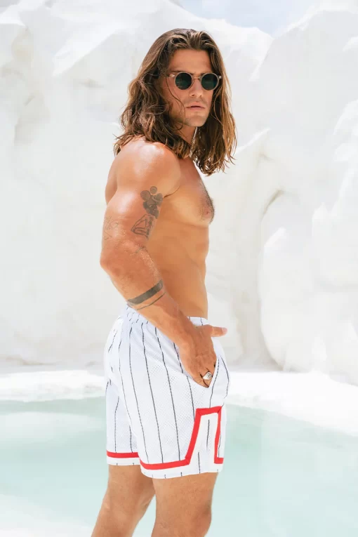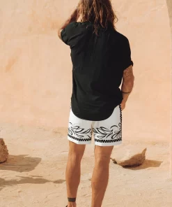Effortlessly cool, our Adrian Short is a relaxed fit, crafted from a breathable fabric, perfect for a day lounging around. – Relaxed fit- Elastic waist band with drawstring- Side pockets- Lined, non-stretch- 100% Polyester Please refer to care label for garment care instructions. Colours may appear slightly different to the website due to lighting, computer picture resolution and monitor settings. ~section~ – Length (Size M): 42cm/16.5inches. – If you need more help with sizing, see our size guide or email us at [email protected] ~section~ David wears a size L.