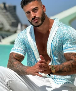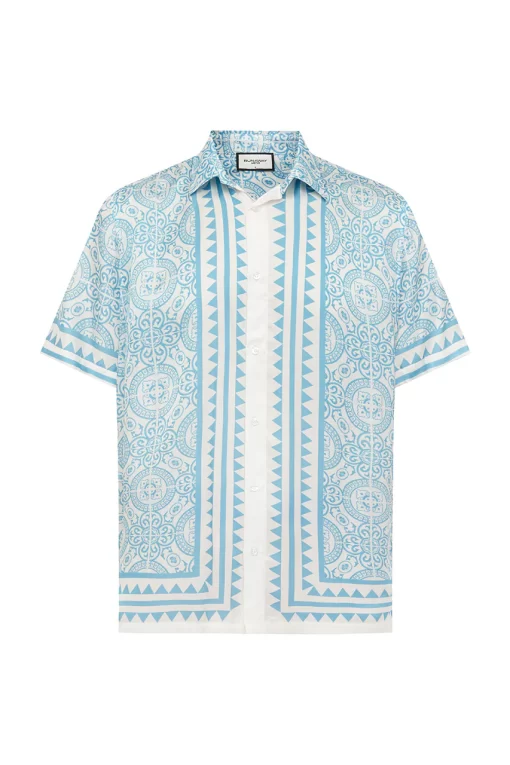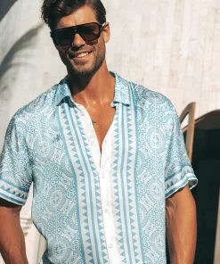 Good news — we’re restocking this style soon! If your size is sold out, select your size and register your email to be notified when it’s available. With a silky finish and mosaic inspired print, our Bodhi Shirt is a versatile piece to elevate your Euro summer wardrobe. – Relaxed fit- Short sleeves- Centre front button closure- Unlined, non-stretch- 50% Rayon u0026 50% Cotton Please refer to care label for garment care instructions. Colours may appear slightly different to the website due to lighting, computer picture resolution and monitor settings. Print placement may vary between each individual item. ~section~ – Length (Size L): 74cm/29inches. – If you need more help with sizing, see our size guide or email us at [email protected] ~section~ Gio wears a size L and is 188cm tall.