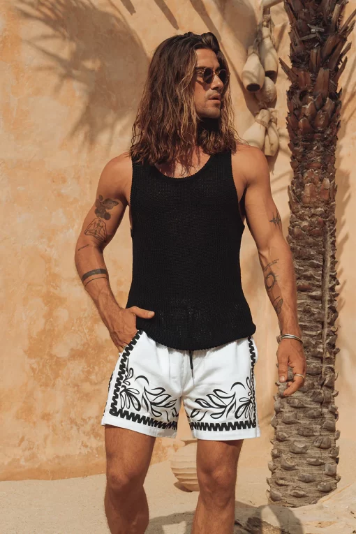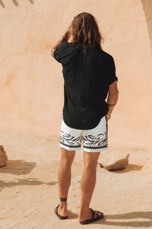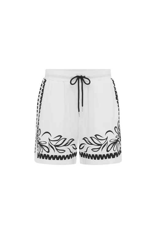 Our Florian Short is an easy throw on piece, featuring a relaxed fit and placement print. – Relaxed fit- Elastic waist band with drawstring- Side pockets- Lined, non-stretch- 65% Rayon u0026 35% Linen Please refer to care label for garment care instructions. Colours may appear slightly different to the website due to lighting, computer picture resolution and monitor settings.~section~ – Length (Size L): 42cm/16.5inches. – If you need more help with sizing, see our size guide or email us at [email protected] ~section~ David wears a size L.