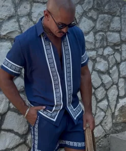 A relaxed fit, timeless tone and print motif, our Jacob Shirt is understated and effortless, pair with our Jacob Short for the complete look. – Relaxed fit- Short sleeves- Centre front button closure- Unlined without st