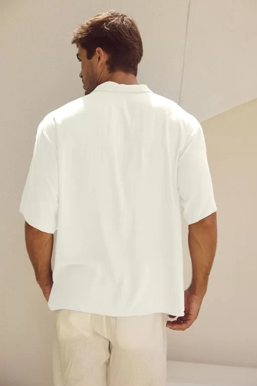 Good news — we’re restocking this style soon! If your size is sold out, select your size and register your email to be notified when it’s available. Our Jayden Shirt features a relaxed fit and is an easy to style piece. – Oversized fit – Size down for a more fitted look- V neck- Button closure- Unlined without stretch- 85% Rayon u0026 15% Linen Please refer to care label for garment care instructions. After washing, please ensure to iron the garment to return it to its original size. Colours may appear slightly different to the website due to lighting, computer picture resolution and monitor settings. ~section~ – Length (Size L): 76.5cm/30inches. – If you need more help with sizing, see our size guide or email us at [email protected] ~section~ Shaun wears a size L and is 188cm tall.