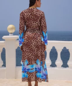A classic robe style with an adjustable belt, our Camille Robe is the chic beach cover up you need this summer, match this with our Malakai One Piece for the complete look. – Maxi length- Full length bell sleeves- Self tie belt with loops- Unlined without stretch- 100% Polyester Please refer to care label for garment care instructions. Colours may appear slightly different to the website due to lighting, computer picture resolution and monitor settings. Print placement may vary between each individual item. ~section~ – Length (Size S):143-145cm/56-57inches. – If you need more help with sizing, see our size guide or email us at [email protected] ~section~ Milena wears a size AU 6 / XS / US 2 and is 177cm tall.