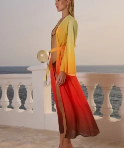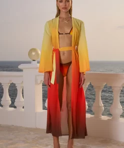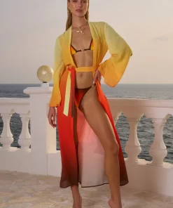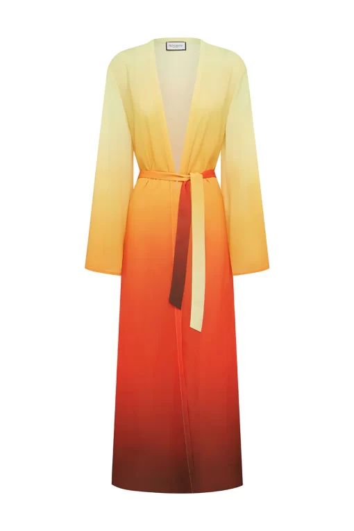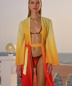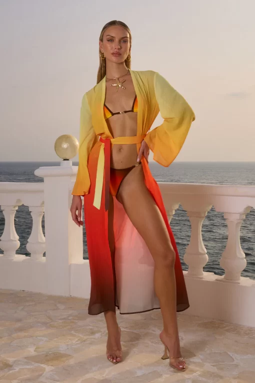 A classic robe style with an adjustable belt, our Camille Robe is the chic beach cover up you need this summer, match this with our Miami Top and Miami Bottom for the complete look. – Maxi length- Full length bell sleeves- Self tie belt with loops- Unlined without stretch- 100% Polyester Please refer to care label for garment care instructions. Colours may appear slightly different to the website due to lighting, computer picture resolution and monitor settings. Print placement may vary between each individual item. ~section~ – Length (Size S):143-145cm/56-57inches. – If you need more help with sizing, see our size guide or email us at [email protected] ~section~ Stacy wears a size AU 8/ S/ US 4 and is 180cm tall.