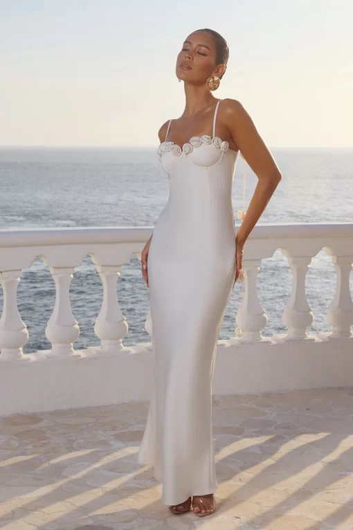 COMING SOON – Hold tight! This style will be yours by early September. With a rosette trim that flows delicately to the back, our Lavena Maxi Dress is a unique, feminine forever piece. – Maxi length- Sweetheart neckline with underwire- Centre back invisible zipper- Lined, non-stretch- Body: 97% Polyester u0026 3% Spandex, Lining: 100% Polyester Please refer to care label for garment care instructions. Colours may appear slightly different to the website due to lighting, computer picture resolution and monitor settings. ~section~ – Length (Size S): 143-145cm/56-57inches. It is true to size. – If you need more help with sizing, see our size guide or email us at [email protected] ~section~ Annabel wears a size AU 8/ S/ US 4 and is 175cm tall.