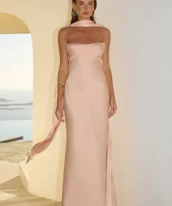 COMING SOON – Hold tight! This style will be yours by early September. Our Madeleine Maxi Dress is the ultimate feminine look, with a curved neckline and pleating to accentuate the feminine form and a neck scarf for a timeless feel. – Maxi length- Strapless- Centre back invisible zipper- Lined, non-stretch- Body: 97% Polyester u0026 3% Spandex, Lining: 100% Polyester Please refer to care label for garment care instructions. Colours may appear slightly different to the website due to lighting, computer picture resolution and monitor settings. ~section~ – Length (Size S): 135cm/53inches. It is true to size. – If you need more help with sizing, see our size guide or email us at [email protected] ~section~ Natalie wears a size AU 6 / XS / US 2 and is 173cm tall.